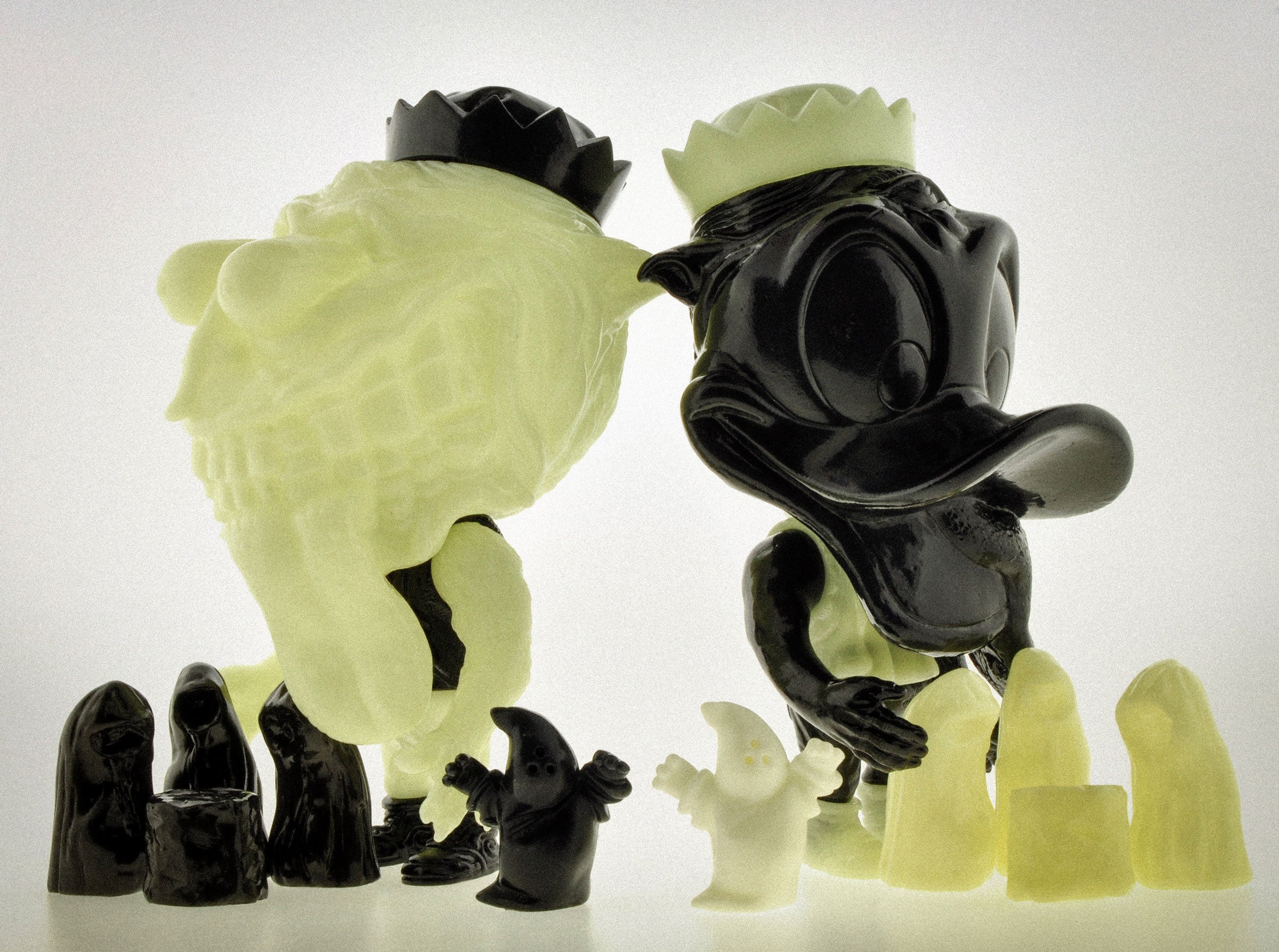 Playset of (2) figures cast in mixed vinyl w/ double-crowns;